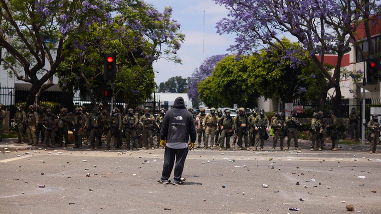 Der US-Präsident lebt seine Allmachtsfantasien aus, entsendet Nationalgarde und Marineeinheiten in die kalifornische Stadt Los Angeles. Die sollen sich um die Protestierenden kümmern, die Beamte der Migrationsbehörde ICE unter anderem mit Flaschen, Steinen und Eiern bewarfen, nachdem diese Dutzende Migrant:innen in Haft nahmen. Die Mobilisierung von Streitkräften im Inland steht rechtlich gesehen auf wackligen Beinen, hierzulande löst der…