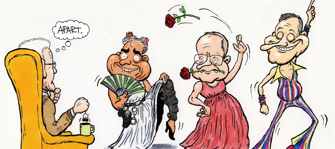 Guter Rat für König Kretschmann: Die Hübschlerinnen der FDP seien höllisch gefährlich, warnt Peter Lenk. Im Gegensatz zu Thomas Strobl, dem er schon das Pimmelchen verdeckt, damit der schwarzen Keuschheit Genüge getan ist.