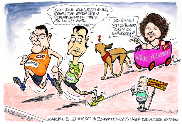 Der Stuttgarter Wahlkreis I verspricht Spannung: Zwischen Cem Özdemir (Grüne) und Stefan Kaufmann (CDU) wird es ein Kopf-an-Kopf-Rennen geben. Das prognostiziert ein Hamburger Wahlforschungsinstitut, das für die CDU arbeitet. Nach Kontext-Informationen beträgt der Vorsprung des Christdemokraten nur noch zwei Prozent. Weit abgeschlagen ist die SPD, die mit einem Angebot überrascht: einer Wahlempfehlung für Özdemir.