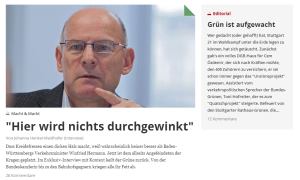 Die SPD leistet Wahlhilfe für den grünen Cem Özdemir. Dasselbe soll Kontext mit seinem Editorial ("Grün ist aufgewacht") und dem Interview mit Winfried Hermann getan haben. Offensichtlich steigt die Nervosität.