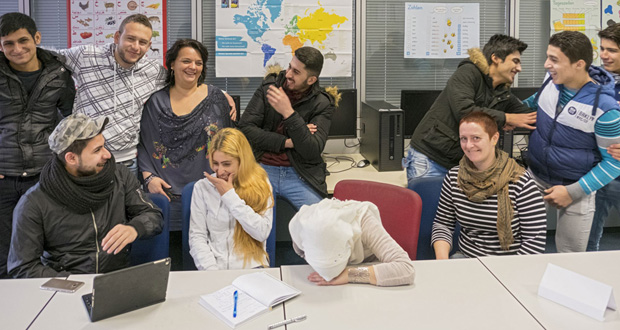 Kontext-Redakteurin Anna Hunger und Kameramann Steffen Braun drehen mit Geflüchteten aus Sindelfingen einen Film. Über deren Schule, über sie selbst und das Lernen in einem Land, dessen Sprache und Schrift sie noch nicht beherrschen. Start unserer Artikelserie über ein Kontext-Projekt.