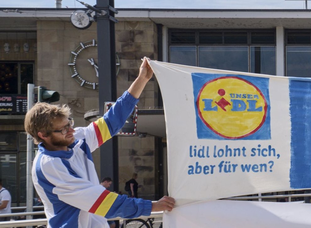 Linke Aktivist:innen begrüßen Reisende mit einem herzlichen Willkommen in der "Dieter-Schwarz-Stadt". Sie wollen sagen, dass der Lidl-Eigner und reichste Deutsche das Rathaus im Griff hat. Die "Frankfurter Rundschau" fragt bereits, ob in Heilbronn "moderner Feudalismus" herrscht.