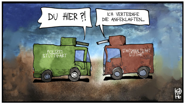 Nach bisher zehn Verhandlungstagen im Wasserwerferprozess vor dem Landgericht Stuttgart, der von Freitag an Sommerpause macht, tritt immer klarer hervor, wie voreingenommen die Staatsanwaltschaft Stuttgart ihre eigenen Ermittlungsergebnisse interpretiert hat. Zeugenaussagen von Verletzten und sogar Polizeivideos klagen viel schärfer an als die Anklagebehörde.