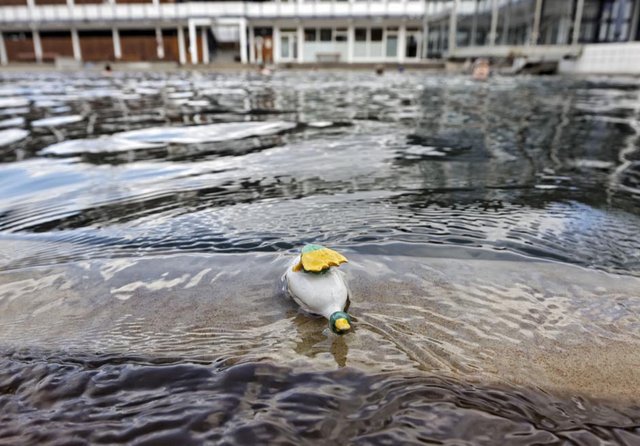 Weil man von Enten ja kennt, wie sie mit dem Kopf unter Wasser und dem Schwanz in die Höhe gehen, schienen im ersten Moment alle einen normalen, bloß etwas ungeschickten Tauchgang zu vermuten. Aber es war eben doch ganz anders: Nicht der Schwanz war in der Höhe, sondern die Beine. Und dabei blieb es auch. Jemand meinte lachend, das sei wohl eine Zirkusente. Dann aber entwickelte sich eine gewisse Aufregung, die darin bestand, dass die Leute auf das Tier hinzeigten, diverse Rufe und Töne ausstießen, niemand aber es wagte, dem Umgekippten zu Hilfe zu eilen. Wer fasst schon eine Ente an? Und wer kann sich ernsthaft vorstellen, eine Ente könnte ertrinken?