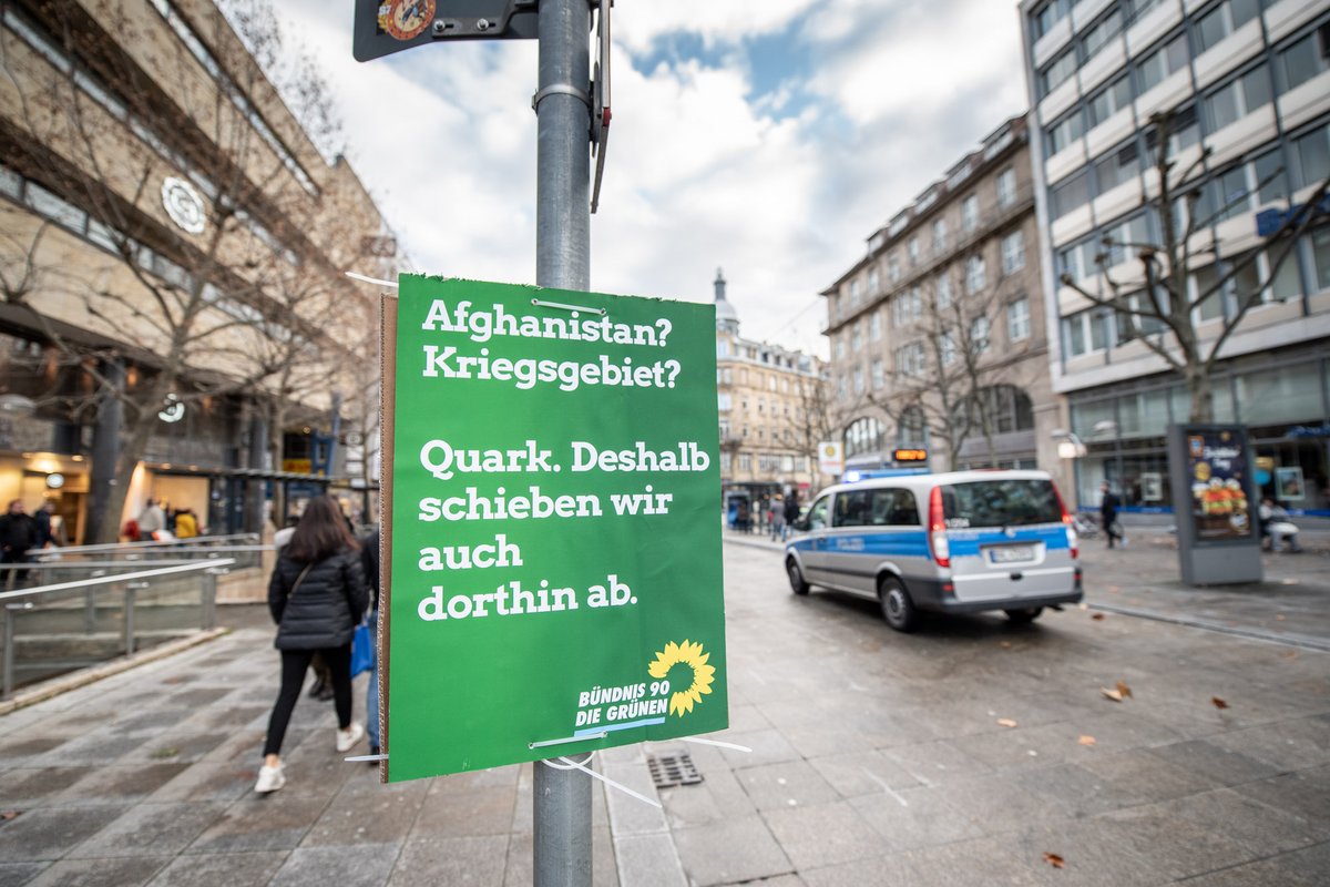 "Nicht zuletzt treten wir für Gewaltfreiheit und eine aktive Friedenspolitik ein." (Website der Grünen-nahen Heinrich-Böll-Stiftung)
