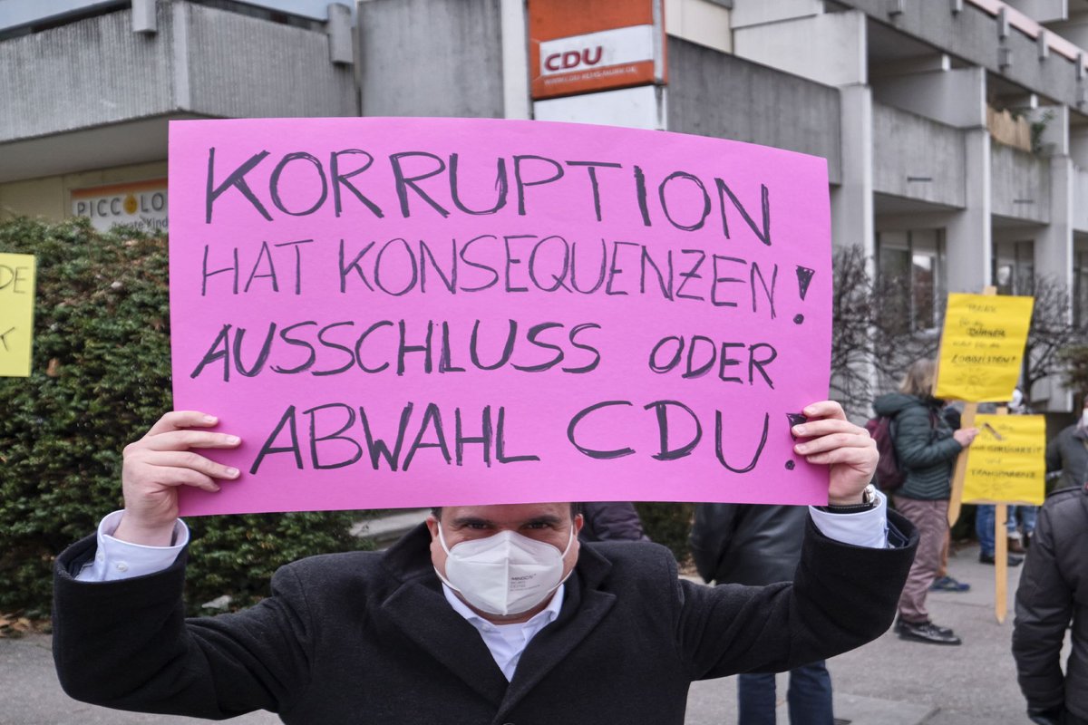 Mit Plakaten wie "Klimaschutz statt Eigennutz" oder "Für eine Politik voll Ehrlichkeit und Transparenz" zogen am vergangenen Montag rund 50 Menschen vor die Kreisgeschäftsstelle der CDU Rems-Murr in Waiblingen. Zeitgleich debattierten Parteimitglieder im Stream, wie sie mit Pfeiffers Nebentätigkeiten umgehen sollen. Ergebnis: Der Abgeordnete habe, so teilt der Kreisverband mit, "nachvollziehbar dargelegt, weshalb die Behauptungen der Verquickung von unternehmerischer Tätigkeit und Mandat jeglicher Grundlage entbehren." Auf Basis der Informationen, die Pfeiffer vorgetragen habe, sehe die Partei "keine Anhaltspunkte" für eine "unerlaubte Verknüpfung von wirtschaftlichen Tätigkeiten und Mandat." Zudem begrüße es die CDU Rems-Murr "grundsätzlich, wenn sich auch Unternehmer in der Politik engagieren."