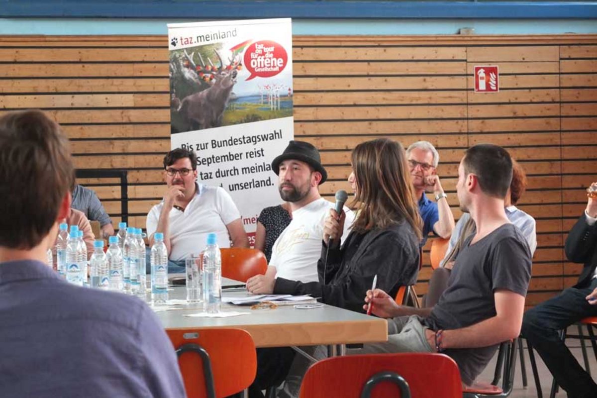 Das ist das Konzept dieses taz-Projekts. Bis zur Bundestagswahl wollen die Berliner KollegInnen Dörfer und Städte in ganz Deutschland besuchen. Vom äußersten Westen bis zum extremsten Osten, von Nord bis Süd. Und da kommen wir von Kontext mit ins Spiel. Denn in Baden-Württemberg sind wir die ExpertInnen vor Ort. Gerne machen wir mit bei den Podiumsdiskussion im Süden, bei denen das Publikum die Hauptrolle spielt, nicht die ReferentInnen.