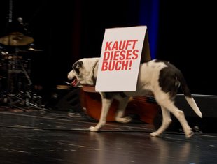 Seinen großen Auftritt hatte Ike im Stuttgarter Theaterhaus. Als hätte er nie etwas anderes gemacht, trug er die Werbetafel ("Kauft dieses Buch") für unser Opus "Kontext! Fünf Jahre couragierter Journalismus" über die Bühne, von rechts nach links und von links nach rechts. Ike tat es in aller Ruhe, wie es sich für einen älteren Herrn gehört, ließ aber nie einen Zweifel daran, dass er die Strecke zielsicher bewältigen würde.