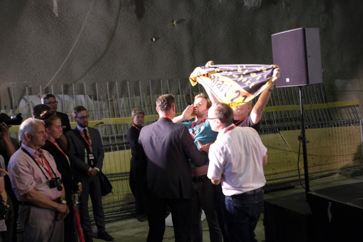 Nicht nur die Art sondern auch die Wahl des Ortes ist beim Demonstrieren wichtig. Als die Bahn vergangene Woche einen <link https: www.kontextwochenzeitung.de schaubuehne hurra-hurra-der-lutz-ist-da-5228.html _blank internal-link-new-window>Erweckungsgottesdienst, pardon, den Durchstich des Feuerbacher Tunnels feierte, waren auch die Stuttgarter SÖS-Linke-Plus-Stadträte Tom Adler und Hannes Rockenbauch dabei. Während Bahnchef Lutz gerade seine ersten Worte auf einer S-21-Baustelle sprach, riefen sie "Oben bleiben!" und präsentierten ein Transparent, woraufhin sie abtransportiert wurden. Ein Security-Mitarbeiter packte dabei Adler am Schlafittchen: "In diesem Tunnel haben Sie ab sofort Hausverbot!"
