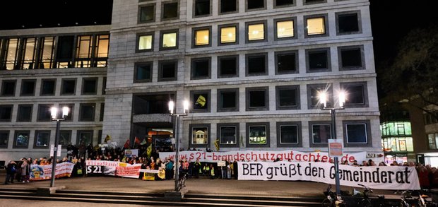 Apropos "Stuttgarter Zeitung". Sie hat zusammen mit den "Stuttgarter Nachrichten" mal wieder bei der Montagsdemo der S-21-Gegner vorbei geschaut. Nicht, weil es die 454. war, sondern wohl wegen der Größe des Banners (17 Meter) und der Papiere, die an die Rathausfassade gebäppt wurden. Voll korrekt teilten die StZN mit, dass die Demonstranten das Konzept für Brandschutz kritisieren, welches die Bahn "nach Gutsherrenart" betreibe. Den Ort haben die Projektgegner gewählt, weil OB Fritz Kuhn (Grüne) offenbar keine Lust hat, ein Gutachten zu lesen, das vom Aktionsbündnis in Auftrag gegeben wurde und im Rathaus seit dem 19.11.2018 vorliegt. So klebten Seiten aus der Expertise zumindest kurzfristig an der Außenmauer. Betrachtet von 1000 Demonstranten (Veranstalter) beziehungsweise 300 (Polizei), berichten die Stuttgarter Zeitungsnachrichten, die vor kurzem noch mitgeteilt haben, die Ordnungsmacht habe keinen Bock mehr zu zählen.