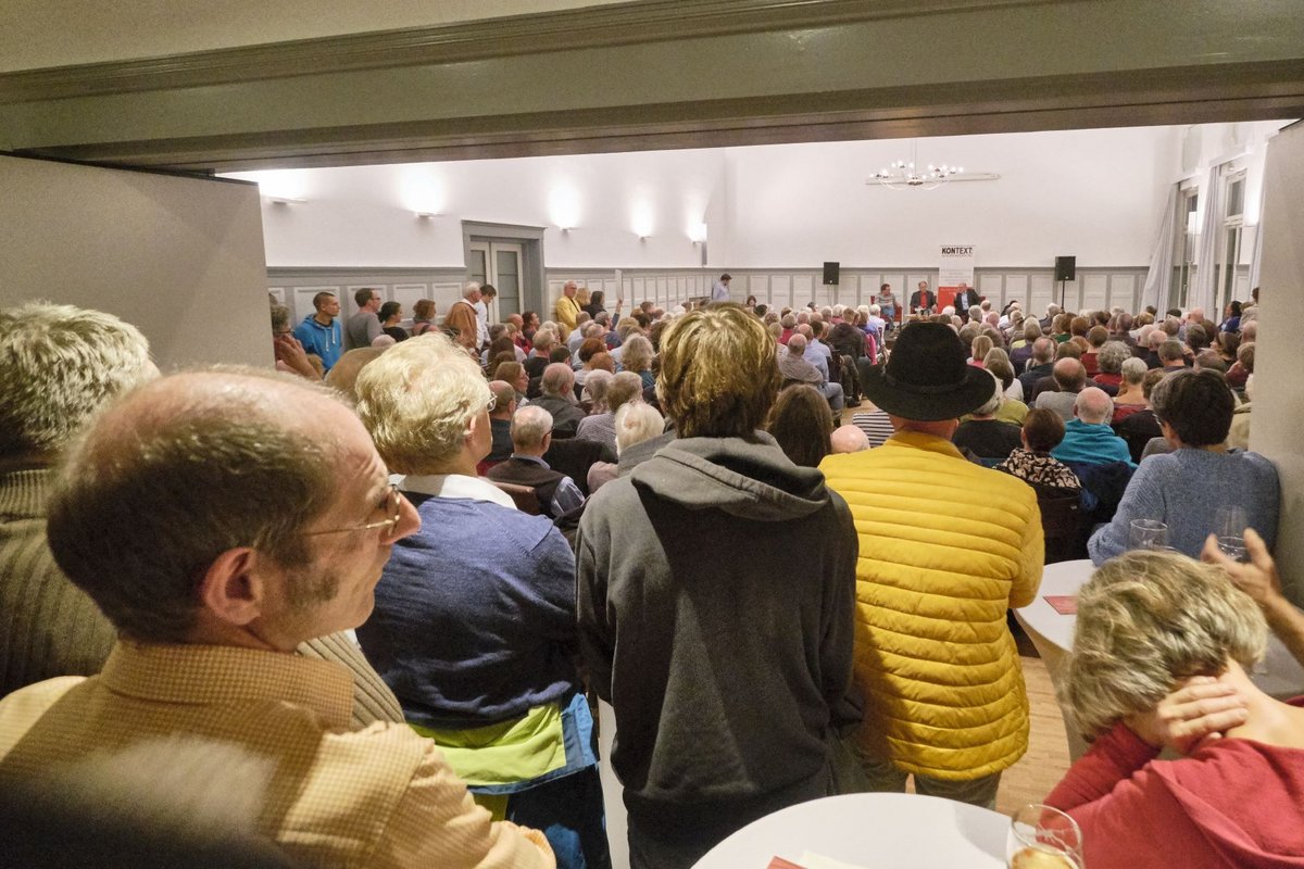 Gerammelt voll war es am vergangenen Mittwoch im Tübinger Bootshaus. Kontext hatte geladen, knapp 300 BesucherInnen drängten sich im großen Saal, um sich anzuschauen, wie Verkehrsminister Winfried Hermann (Grüne) und Kontext-Autor Luik über Zustand und Zukunft der DB im Allgemeinen und – das war von vornherein klar – Stuttgart 21 im Besonderen debattieren. Beide sehen das Milliardengrab kritisch. Der Politiker verweist darauf, dass es in keinem Parlament je eine Mehrheit für einen Ausstieg gegeben habe, und will das Großprojekt deshalb konstruktiv verbessern. Der Journalist hält es hingegen für unmöglich, eine "durch und durch irrsinnige Planung" damit noch zu retten. Immerhin tausche man einen perfekt funktionierenden Bahnhof für sehr viel Geld gegen eine weniger leistungsstarke Tiefhaltestelle mit schiefen Gleisen und potenziell lebensbedrohlichem Brandschutz. Da wurde es durchaus hitzig zwischen den beiden.