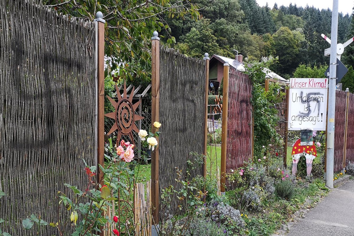 Ebenfalls seit Jahren berichtet Kontext-Autor Jürgen Lessat über die oft obskuren Argumente und Zusammenschlüsse von Windkraft-Gegnern. Zuletzt über eine Widerstands-Koalition zwischen der Hochschwarzwald Tourismus GmbH (HTG) und einem Verein namens LANA, die zu einer Veranstaltung im Kurhaus Schluchsee mit Tunnelbohrer Martin Herrenknecht am 29. Oktober geladen haben. Es geht obskur weiter: Den Herrenknecht-Vortrag will sich auch Klaus von Zahn, Amtsleiter des Umweltschutzamts Freiburg, anschauen – das wird ihm aber verwehrt, man will offenbar unter sich bleiben. Damit das nicht ganz gelingt, haben die Freiburger Gruppen von Extinction Rebellion und Fridays for Future am Freitag ab 14:15 Uhr zu einer Gegenkundgebung vor dem Kurhaus aufgerufen. Wenig Öffentlichkeit wünscht sich auch Schluchsees windradskeptischer Bürgermeister und HTG-Aufsichtsratsvorsitzender Jürgen Kaiser – er ignoriert beharrlich die Anfragen einer Studentin, die ihre Masterarbeit über den Widerstand gegen Windkraft schreiben will und sich mit ihrer Recherche auch an unseren Autor gewandt hat. Keine Probleme hat die HTG offenbar wiederum damit, Adressdaten von Gastronomen an den LANA-Verein weiterzugeben, obwohl das gegen den Datenschutz verstoßen würde. Wes Geistes Kind manche Windkraft-Gegner sind, zeigte sich kürzlich im ebenfalls im Südschwarzwald gelegenen Münstertal, wo Windkraft-Befürworter seit Jahren aktiv sind und ihre Haltung mit Plakaten an ihren Zäunen kundtun (Kontext berichtete hier und hier). Eines dieser Plakate und der Zaun daneben wurden Anfang Oktober mit Hakenkreuzen beschmiert und auf der Straße stand groß "AfD" gesprüht. So klar ordnen sich die Anhänger dieser Partei nicht immer ein.