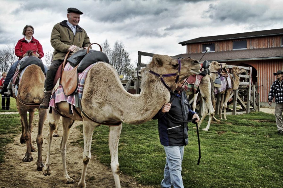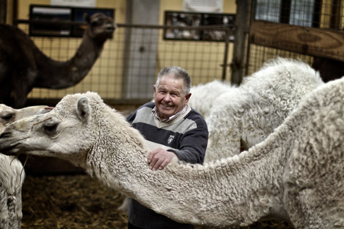Er ist neugierig, er möchte alles ganz genau wissen, er ist ein Selfmade-Forscher. Er hat seine Tiere beobachtet, jeden Tag. Welches Kamel sich wann und warum wo hinlegt. Er hat sie nie als Kuscheltiere empfunden, nie als Touristenattraktion, das war ein Nebenprodukt, das ihm sein Beobachtersein finanzierte. Er hat akribisch Buch geführt über Verhalten und Gewohnheiten seiner Tiere. Studenten aus Stuttgart-Hohenheim und Tübingen schrieben Diplom- und Masterarbeiten auf seinem Hof. Er wollte die Milch der Muttertiere wegen ihrer Heilkraft auf den Pharmamarkt werfen. Und weil ein Professor sagte, das könne er aus hygienischen Gründen vergessen, kaufte er sich eine Gefriertrocknungsanlage, um die chemischen Bestandteile zu extrahieren. Geschafft hat er das nicht mehr. Vorher kam das Feuer.