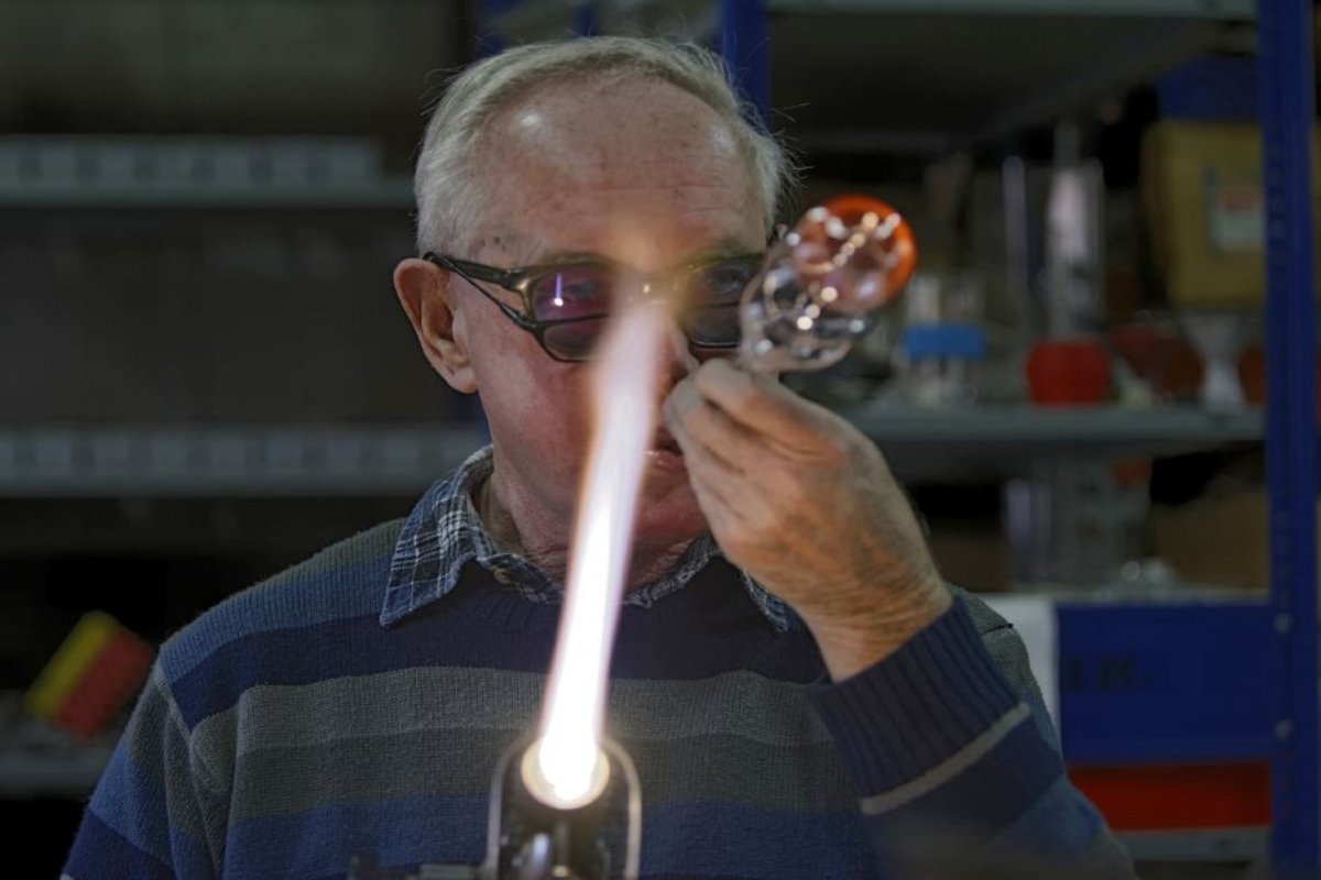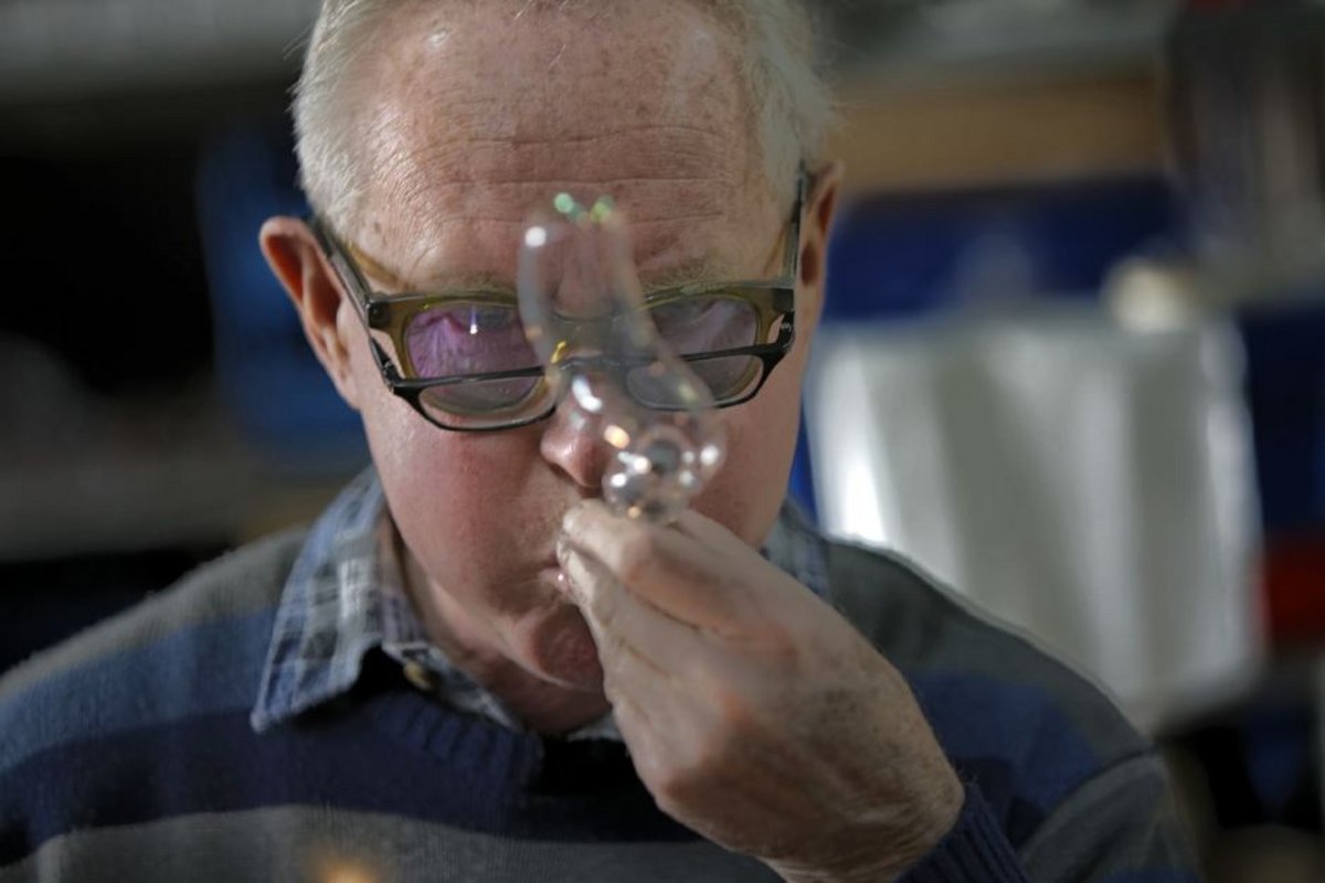 Seit mehr als 50 Jahren ist Dietmar Reiß Glasbläser, mit grauen Händen vom Ruß, der sich mit der Zeit in die Ritzen seiner Haut eingegraben hat. Früher hat er in der väterlichen Werkstatt Laborgeräte hergestellt. Heute fertigt der 70-Jährige gemeinsam mit seinem Sohn Daniel hochklassige Glaswasserpfeifen. Denn eine handgemachte, gute Bong ist für den Kräuterfreund wie das Bose-Soundsystem für den Opernfan: was für Genießer, für Liebhaber. Außerdem ist ihr Gebrauch je nach Krautbefüllung gut für die Bronchien und gut gegen Schmerzen.