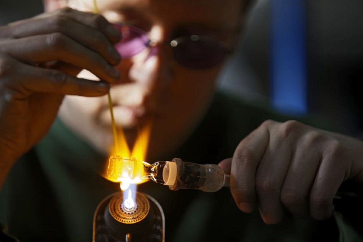 Dietmar und Daniel Reiß aus Böblingen sitzen nebeneinander in der Werkstatt zwischen Rohren und bunten Farbgläsern in den Regalen, Vater und Sohn, jeder an seiner Flamme. Dietmar Reiß dreht noch ein Röhrchen übers Feuer, bis es an seinem Ende rot und gelb glüht. Ob er seine Geräte schon einmal ausprobiert hat? "Nö", sagt Reiß. Es sei schon immer Nichtraucher und wegen so ein paar Kräutern fange er mit einen 70 Jahren auch nicht mehr damit an. "Aber ich liebe das Glas", sagt er. "Es ist ein besonderer Rohstoff. Schwierig, unberechenbar und sehr sensibel." Er bläst eine feine, schimmernde Blase aus dem glühenden Röhrchen, die größer und größer wird.