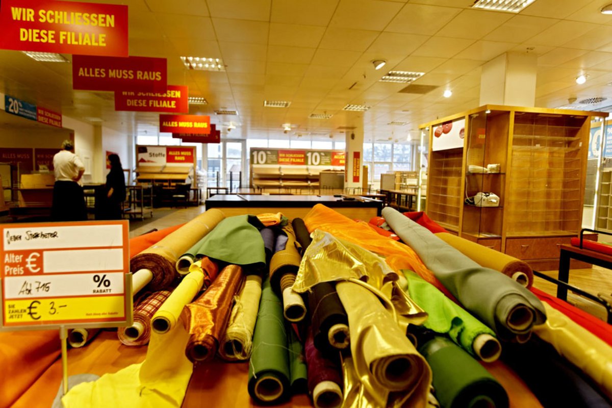 Von den einst 230 Stuttgarter Karstadtmitarbeitern sind noch 150 an Bord. Die stellvertretende Betriebsratsvorsitzende Gabriele Pilz, 37 Jahre Karstadt, seit Jahren Herrenkonfektion, gehört dazu. Gleich hinter den nackten Torsi liegt ihr Betriebsratsbüro. Deprimierend sei das inzwischen hier, Kunden beschwerten sich, weil sie ihre Größe nicht finden oder keine Bedienung. "Aber was gibt es bei drei paar Schuhen noch groß zu bedienen?", fragt die Betriebsrätin. Den Ausverkauf haben professionelle Abwickler übernommen. Sie entscheiden nun, welche Prozente auf welche Ware kommen und was noch nachbestellt wird. Sie sind die Totengräber, die mit der Schließung des Warenhauses Geld verdienen. Für eine wie Gabriele Pilz muss das wie Leichenfledderei wirken.