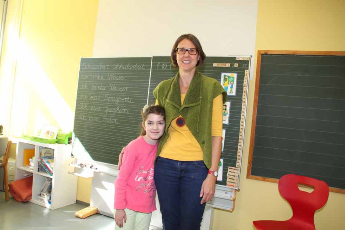 In der VKL, der Vorbereitungsklasse, steht die deutsche Sprache im Vordergrund: Begrüßungsfloskeln, Buchstaben, Zahlen, Alltagsgegenstände. Und immer wieder die richtigen Artikel. Wenn ein Satz richtig gesagt wurde, schreibt ihn Günter an die Tafel – einmal in Druckschrift, einmal in Schreibschrift. Auch so eine komplizierte Sache, mit der die Acht- bis Elfjährigen noch ihre Probleme haben. Andere Wörter sitzen ganz schnell. "Oktoberfest" kann Mohamad akzentfrei aussprechen, auch wenn das nicht auf dem Stundenplan steht. Als die Farben wiederholt werden, ist er sich dagegen nicht mehr so sicher. "Ich weiß nicht", sagt er verlegen. "Scheiße." Die Lehrerin schaut entsetzt: "Das hab ich dir aber nicht beigebracht."
