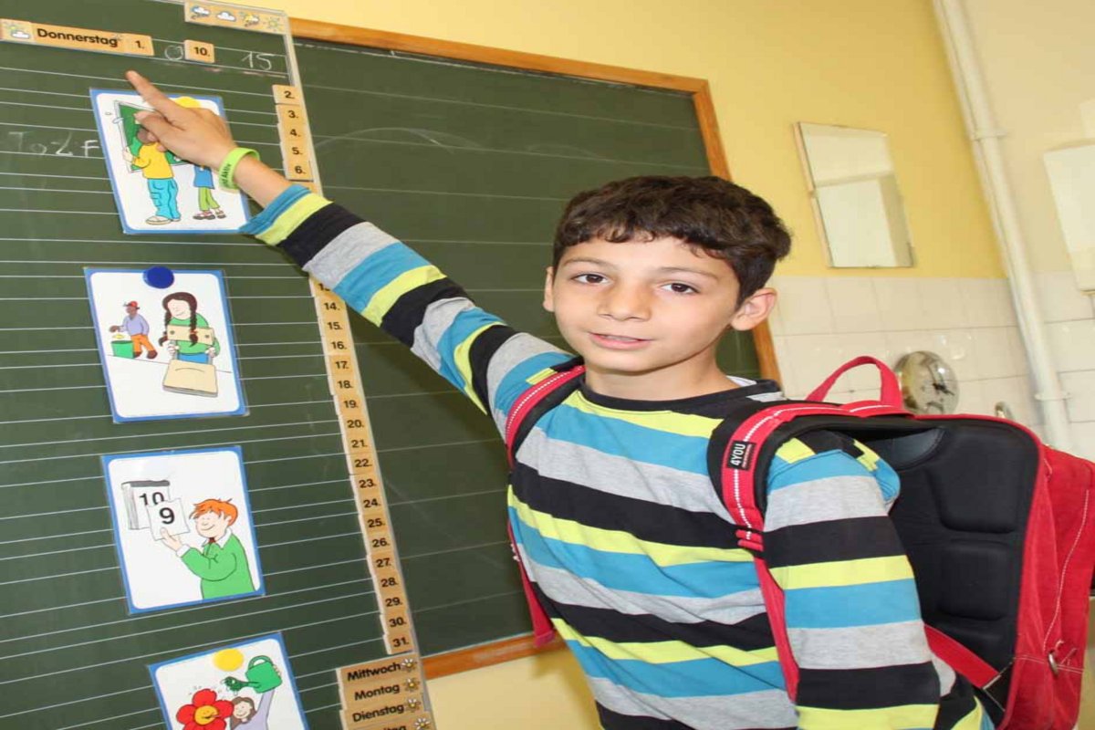 Als es schließlich losgeht, fragt Monique Günter zunächst nach dem Datum. Rituale sind wichtig, das weiß die Lehrerin, die eine spezielle Fortbildung im Unterrichten von Flüchtlingskindern besucht hat. Mohamad versucht es als Erster. "Donnerstag", ruft er und überlegt kurz beim Datum. Für ihn ist die Schule besonders schwierig, denn sein Vater, ein Syrer, kann ihm selbst auf Arabisch nicht helfen. Er war schon in der Heimat ein Analphabet. Doch Mohamad schafft es. Als er das richtige Datum nennt, springt er vor Freude vom Stuhl. "Ganz toll", sagt Monique Günter.