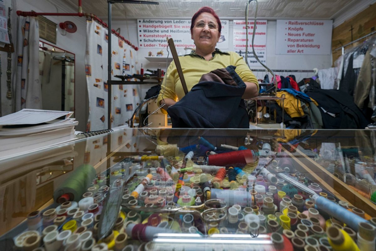 Hatice Aksoy hängt die Hemden gleich neben den Nerz, den sie als nächstes ausbessern will. "Ob reich oder arm, ist mir egal", sagt die Geschäftsfrau mit den goldenen Händen, "ich gucke nicht, ich nähe nur." Draußen vor ihrem Schaufenster steht ein Porsche hinter einem Mercedes im Stau.