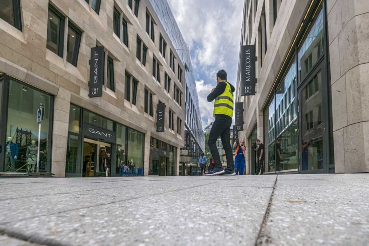 "Ein Ort, an dem sich Menschen und Marken begegnen", so haben es die Baustellenschilder schon lange verkündet. Und nun ist es endlich soweit, nun wird man im neu eröffneten Dorotheen Quartier endlich Menschen-Marken-Vorstellungsgespräche wie "Gestatten: Josef Scheifele!" – "Angenehm: Louis Vuitton!" belauschen können. Ein Quartier "im Zeichen des Stils und des gehobenen Lebensgefühls"; "eine ganz außergewöhnlich schöne Verbindung von Einkaufen, Genuss, Arbeiten, Wohnen und Entspannen"; "ein ganzes Viertel für Genießer und Entdecker, für Gourmets und Flaneure". Wow! Schauen wir also mal selber an, was uns da versprochen wird.