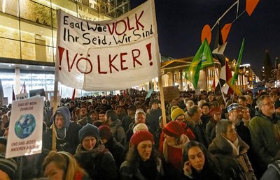 "Wir sind das Volk", lautet auch der Kampfspruch der Alternative für Deutschland (AfD) und der Pegida-Bewegung ("Patriotische Europäer gegen die Islamisierung des Abendlandes"). Eine derart konstruierte homogene Gemeinschaft schließt alle Anderen, etwa Neuankommende im Land, aus.