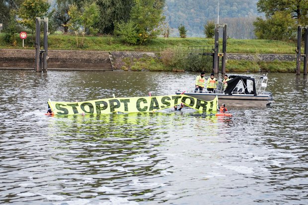 Erst nach einer halben Stunde rückt die Polizei mit Schnellbooten an und beginnt mit der Räumung. Teils sehr ruppig und fahrlässig, wie ihr verschiedene AktivistInnen vorwerfen, etwa <link http: blog.eichhoernchen.fr post mit-gummi-enten-schwimmend-gegen-castor external-link-new-window>Cécile Lecomte, die ihre Eindrücke in ihrem Blog festgehalten hat. So habe die Polizei, die SchwimmerInnen "mit waghalsigen Bootsmanövern" gefährdet, und sie "ordnete die Weiterfahrt des zuvor wegen der Wasserdemonstration angehaltenen Castor-Schiffes an, obwohl die Menschen sich noch im Wasser befanden", so Lecomte. Mit nur wenigen Metern Abstand sei der Schubverband an einigen SchwimmerInnen vorbeigefahren, habe diese durch die Sogwirkung massiv in Gefahr gebracht. "Völlig inakzeptabel" findet so ein Verhalten Franz Wagner von der Arbeitsgemeinschaft Atomerbe Neckarwestheim, die Teil des "Neckar castorfrei"-Bündnisses ist.