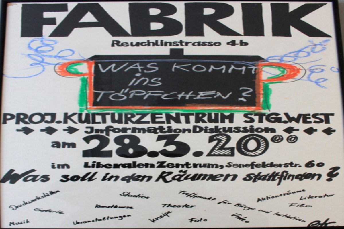 Ein großformatiges Schwarzweißfoto fällt zuerst ins Auge. Joseph Beuys ist unschwer zu erkennen, neben ihm der Verleger Michael Klett, dann der frühere Oberbürgermeister Manfred Rommel. Vorn hält ein nackter, zotteliger Faun vor seinem Körper eine Leinwand in die Höhe. Hinten diskutiert der Designer Kurt Weidemann mit zwei Hausbesetzern, die in die Versammlung eingedrungen waren. "Stuttgart: Kunstprovinz [oder] Kunstmetropole" ist dahinter zu lesen und darunter: "Künstlerhaus Stuttgart".