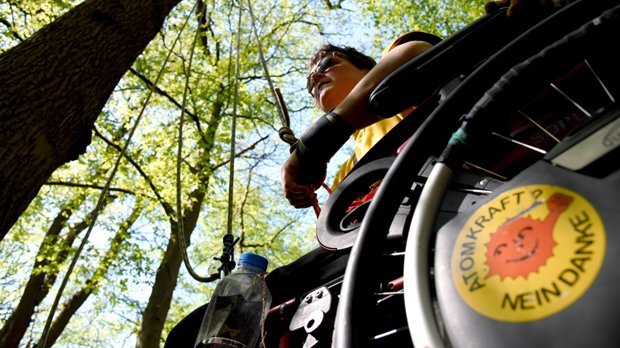 Im Wasser ist an diesem Tag auch die langjährige Anti-Atom-Aktivistin Cécile Lecomte, Jahrgang 1981, die in der öko-sozialbewegten Szene unter dem Spitznamen "Eichhörnchen" bekannt ist. "Die Menschen haben das Stereotyp im Kopfe, dass Menschen mit Behinderung nichts können, weil sie eben behindert sind", schreibt Lecomte auf ihrem Blog, und fragt, ob man es den Betroffenen nicht selbst überlassen kann, "einzuschätzen, was sie können und was sie nicht können?" 2004 ist Lecomte an Rheuma erkrankt, wobei sich ihre Mobilität zunehmend verschlechtert: Ende 2017 war sie noch mit Krücken unterwegs, heute ist sie Kletteraktivistin mit Rollstuhl – was regelmäßig für verdutzte bis ungläubige Rückfragen sorgt.