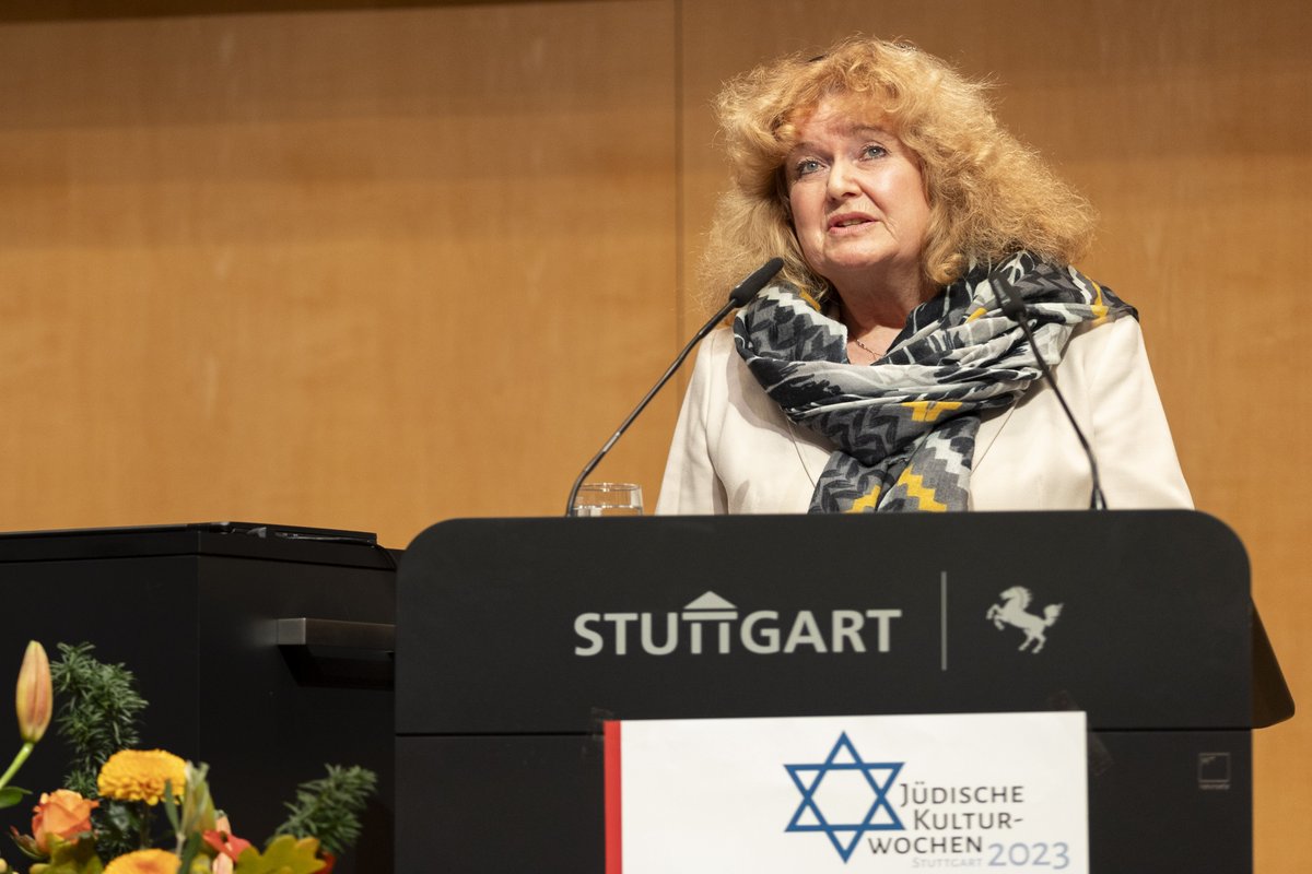 Baden-Württemberg schon jetzt als sehr wehrhaft darzustellen, bemüht sich Landesjustizministerin Marion Gentges (CDU) bei der Kulturwochen-Eröffnung am Montag: Im Land habe es schon vor dem 7. Oktober, zwischen 2019 und 2022, einen Anstieg antisemitischer Straftaten um 84 Prozent gegeben. Zugleich hätte sich aber die Zahl der Verurteilungen verdreifacht. Und jetzt am 10. November finde eine Konferenz der Justizminister:innen statt, auf der man auch über rechtliche Verschärfungen sprechen werde. "Die Leugnung des Existenzrechts Israels ist aktuell noch keine Straftat", so Gentges. "Wir werden sehen, ob man das ändert."