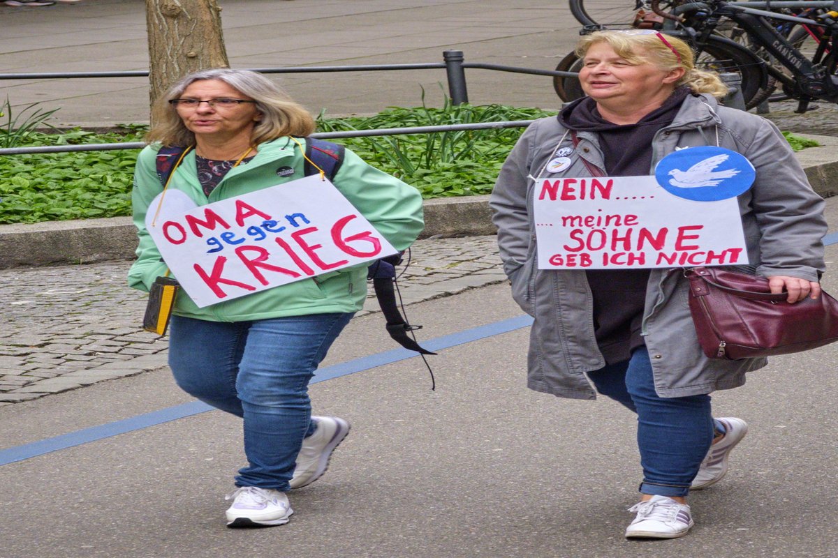 Für Frieden auf die Straße zu gehen, kann so falsch nicht sein. Am Karsamstag sammelten sich zunächst um die 2.000 Frauen und Männer auf dem Stuttgarter Schlossplatz zur Auftaktkundgebung, zum Demozug wurden es dann deutlich mehr. Im Vergleich zum Jahr davor wurden die überwiegend älteren Ostermarschierer:innen von mehr Familien mit Kindern und jüngeren Leute begleitet.