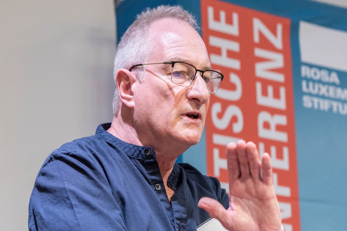 Kräfte zu bündeln, wirkt nicht nur naheliegend, sondern notwendig mit Blick auf die eskalierenden Großkrisen weltweit. Schwerpunktthema der Konferenz, die die Linkspartei-nahe Rosa-Luxemburg-Stiftung (RLS) in Kooperation mit Verdi Stuttgart organisiert hat, war dabei nicht die Erderhitzung, im Vordergrund stand die Frage, wie sich mehr Frieden auf der Welt realisieren lässt. Einen weiten Bogen schlug dabei Ingar Solty, Referent für Friedens- und Sicherheitspolitik der RLS. Er musste sich kurz fassen, hatte nur eine halbe Stunde Zeit, weil er dann als Experte beim "Deutschlandfunk" gefragt war, wo er ein Streitgespräch mit Christoph Heusgen, dem Leiter der Münchner Sicherheitskonferenz, führte (nachzuhören hier)