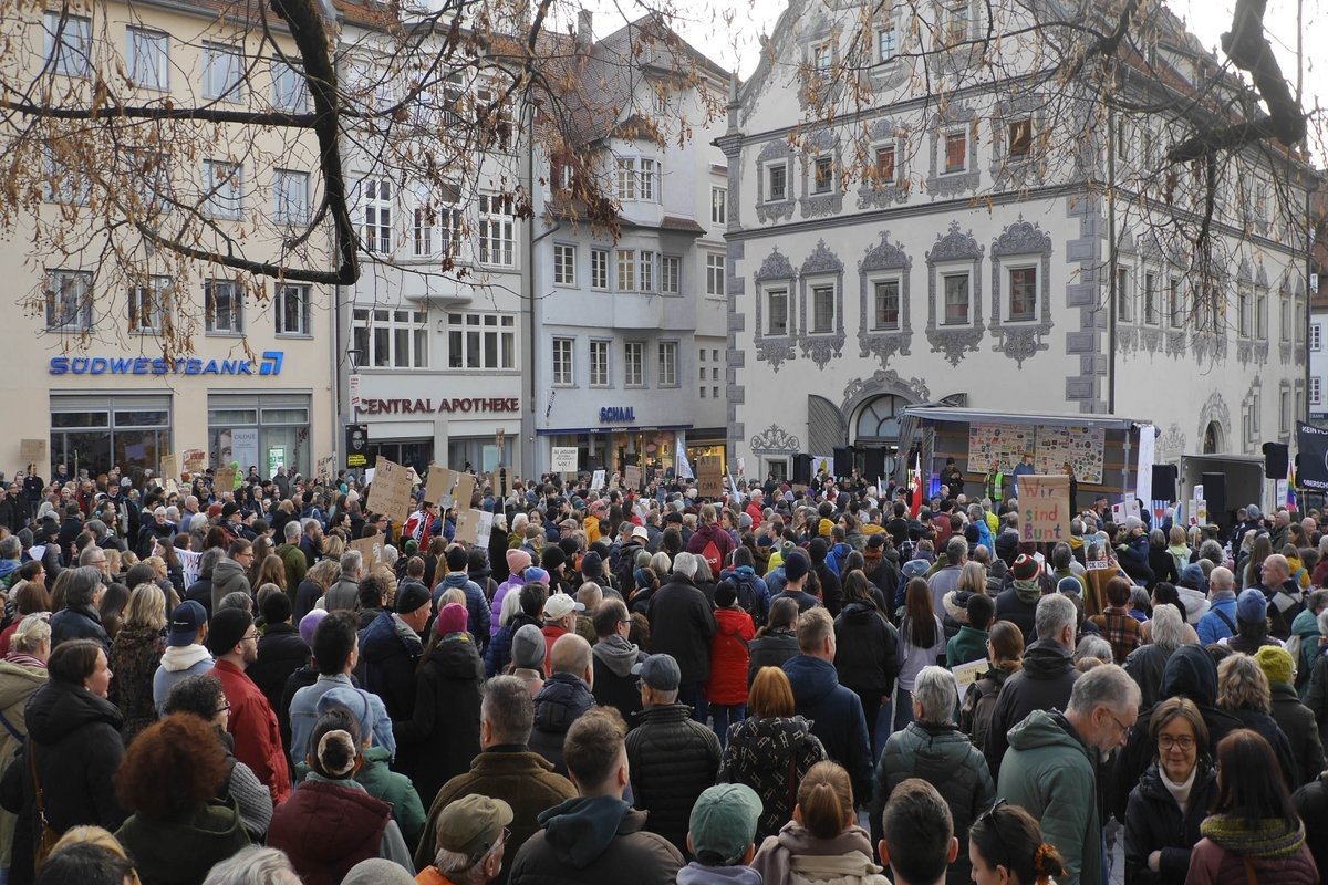 Aufgerufen zur Demo in Ravensburg hatte ein breites Bündnis, das sich für den Demo-Tag vereint hatte. Ein eher lockeres und anlassbezogenes Zusammenspiel also, das möglich wurde, weil sich immer mehr Menschen bedroht fühlen von der AfD und deren rechtsradikaler, menschenfeindlicher Politik.