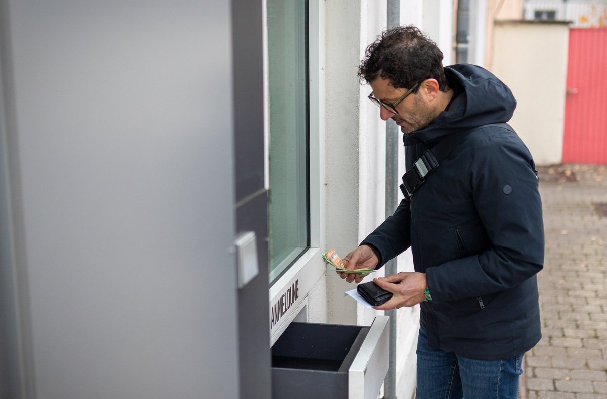 Um Punkt acht Uhr legt Luigi Pantisano einen dicken Stapel Geldscheine in eine Schublade. "Das sind 1.800 Euro", sagt er, zückt sein Portemonnaie, sucht weitere 30 Euro heraus und legt sie dazu. Anschließend schiebt er die Schublade zu, und sie verschwindet bei einem Mann, der hinter der Glasscheibe sitzt. Das Geld ist weg, aus der Freiheit in den Knast. Meryem G. geht den umgekehrten Weg – gleich wird sie frei sein.