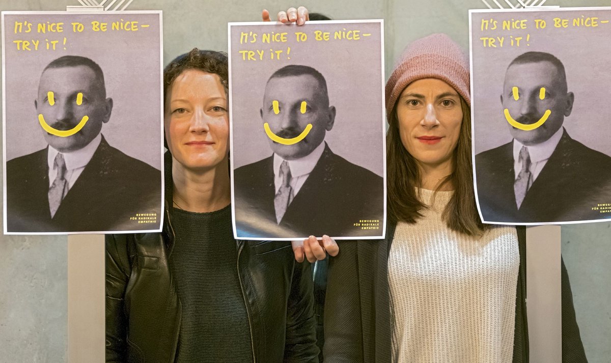 Dass sich niemand an die Bewegung für Radikale Empathie erinnern kann, hat einen einfachen Grund: Sie ist frei erfunden. Weder gibt es einen Joachim Unland, noch einen Benno Riemann. Die Gründung, der Bezug zur RAF, gesellschaftlichen Errungenschaften und Verquickungen: alles Fiktion. Alles Utopie. Entsprungen den Köpfen des Stuttgarter Künstlerinnen-Kollektivs Jean&Claude. "Die Banalität des Guten" heißt ihre erste gemeinsame Ausstellung im Foyer Nord des Staatstheater Stuttgart. Ab Donnerstag stellen Designerin Anja Haas und Fotografin Dodo Brewing dort Archivfotos, Zeitungsausschnitte, Flugblätter, Transparente, Interviews und andere Exponate aus, die eine Protestbewegung greifbar machen, die es niemals gab.