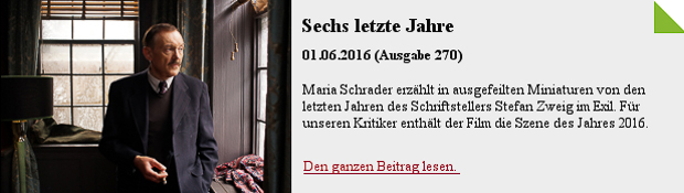 Wie? Ach so, ja. Nur ein Film! Na, dann meinetwegen auch nur eine Szene: Die aus Maria Schraders Exil-Drama "Vor der Morgenröte", in dem es den ganz exzellent von Josef Hader gespielten Schriftsteller Stefan Zweig auf seiner Flucht vor den Nazis nach Brasilien verschlagen hat. Dort steht er nun, verschwitzt und müde, in der tiefsten Provinz und hört zu, wie sich ihm zu Ehren eine schwarze Combo am Donauwalzer abmüht. Und trotz der schrägen Töne kommen ihm die Tränen, übermannt ihn also die Erinnerung an eine alte Welt, die er für immer verloren hat.