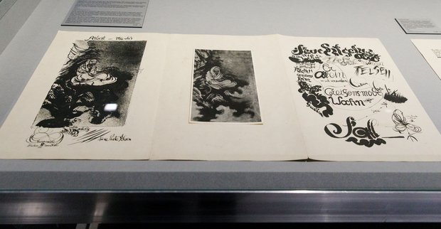 Ein meditierender Buddha sitzt in einem ornamentalen Wolkenwirbel. Auf die Tuschezeichnung des chinesischen Meisters Mu-Chi aus dem 13. Jahrhundert reagiert links eine freihändige Nachzeichnung, ein drittes Blatt rechts übersetzt die Form in ein Schriftbild. Mit diesem dreiteiligen Leporello aus der Bauhaus-Publikation "Utopia" wollte Johannes Itten seine Lehrmethoden in der ersten Bauhaus-Ausstellung außerhalb Deutschlands vorstellen. Sie fand 1922 an der Kunstschule Kala Bhavan statt, die der indische Dichter Rabindranath Tagore 1919, im selben Jahr wie das Bauhaus, 150 Kilometer nördlich von Kalkutta gegründet hatte.