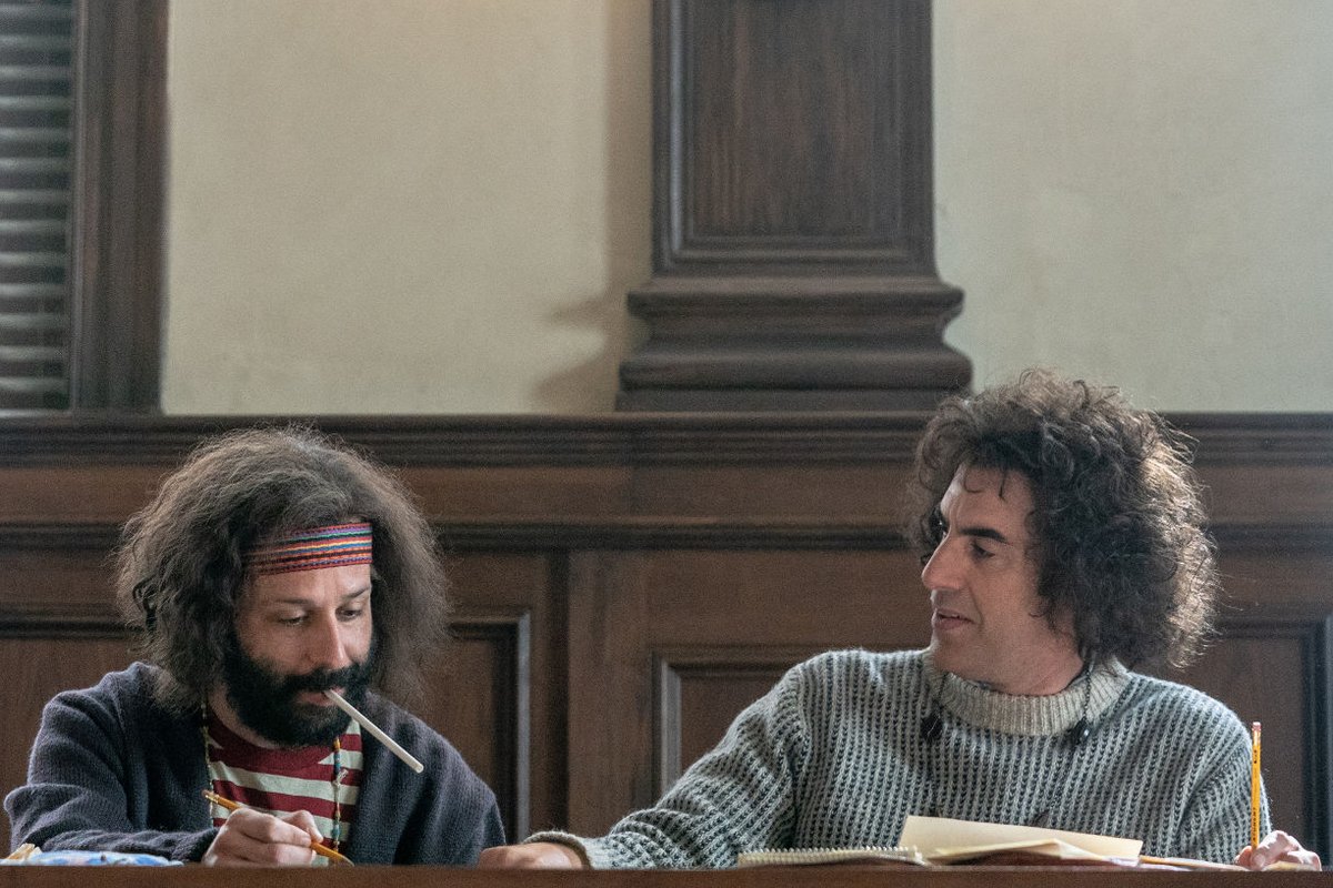 Sieben Weiße also, die während eines Parteitags der Demokraten an Demonstrationen gegen den Vietnamkrieg beteiligt waren und nun wegen Aufstachelung zur Gewalt und Verschwörung vor Gericht stehen. Sorkin ist sich bewusst, dass er das Thema Rassismus nur angespielt hat, er weiß aber auch, dass er seinem ohnehin zum Bersten vollen Drama nicht noch mehr aufbürden kann. Er versucht auch gar nicht erst, seine Entscheidung zu verbrämen, er geht offen mit ihr um und lässt Bobby Seale (Yahya Abdul-Mateen II) in einer Verhandlungspause sagen, sein Fall habe tatsächlich einen anderen Hintergrund. Wenn Aktivisten der Studentenorganisation SDS (Students for a Democratic Society) wie Tom Hayden (Eddie Redmayne) und Rennie Davis (Alex Sharp) oder Yippies (Anhänger der Youth International Party YIP) wie Abbie Hoffman (Sacha Baron Cohen, bekannt als Borat) und Jerry Rubin (John Carrol Lynch) rebellierten, dann sei das im Grunde eine Rebellion gegen deren Väter. Seine Motivation dagegen seien Bilder von einem Ast und einem Strick.