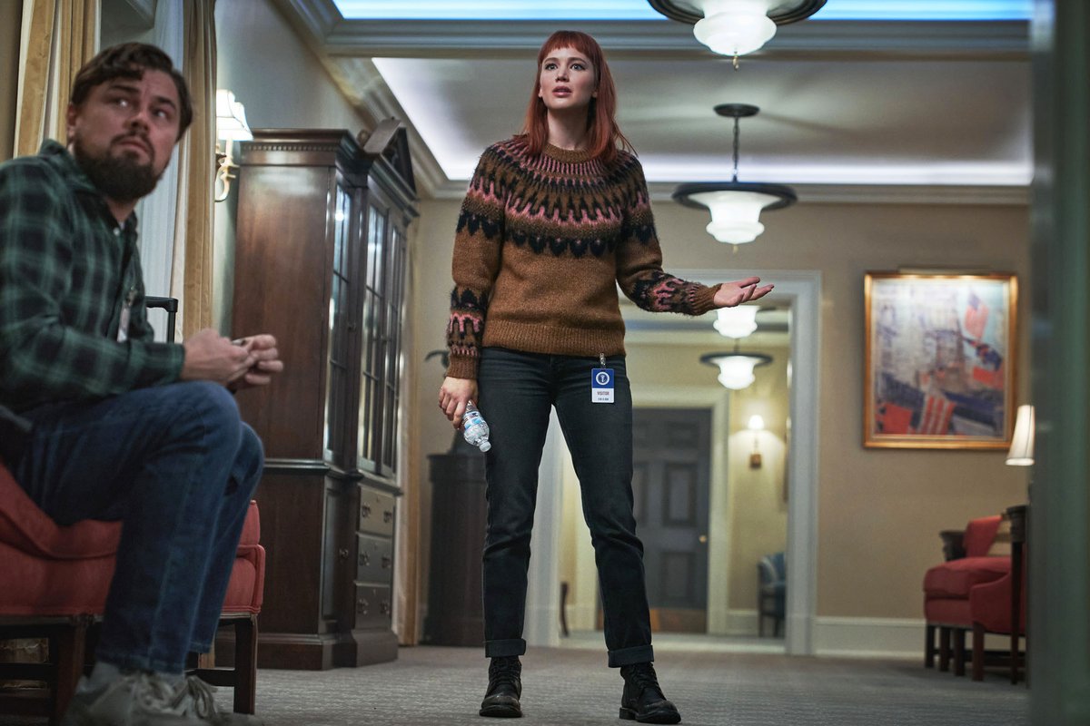 Und so sind in diesem Weltuntergangsszenario Stars versammelt, die sich schon immer als Teil des progressiven Hollywood verstanden haben. Stars, die hier nicht unbedingt als SchauspielerInnen gefordert sind, sondern als ihre eigenen Ikonen auftreten, sich gleichzeitig aber demütig der guten Sache unterordnen und ihr glamouröses Image unterlaufen: Leonardo DiCaprio als nerdiger Professor mit Brille, Bart, Holzfällerhemd und Panikattacken; Jennifer Lawrence mit Rothaarperücke, Nasenring und Norwegerpulli; Meryl Streep mit roter Brille und einer Frisur, die man nur als unmöglich bezeichnen kann; Jonah Hill als ihr deppert-arroganter Sohn und Stabschef; Cate Blanchett als aufgedreht fröhliche Talk-Show-Moderatorin Brie ("Wir müssen den schlechten Nachrichten Leichtigkeit verleihen!"); Timothée Chalamet als hippiesker Kiffer; Ariana Grande als eitel-narzisstische Popsängerin; und noch viele mehr …