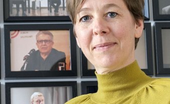 Das Papier im Ausstellungsraum changiert zwischen drei Farbtönen: Zwischen einem hellen und einem dunkleren Blau leuchten je nach Tageszeit, von hinten angestrahlt, helle Flecken hervor. Pulp Painting nennt sich das Verfahren, zu Deutsch auch Zellstoffmalerei: Von Hand nimmt der Künstler den verschiedenfarbigen Papierbrei, die Pulpe, aus der Bütte und verteilt sie auf das Sieb. Schneider hat Blue Jeans verarbeitet, daher kommen die Blautöne.