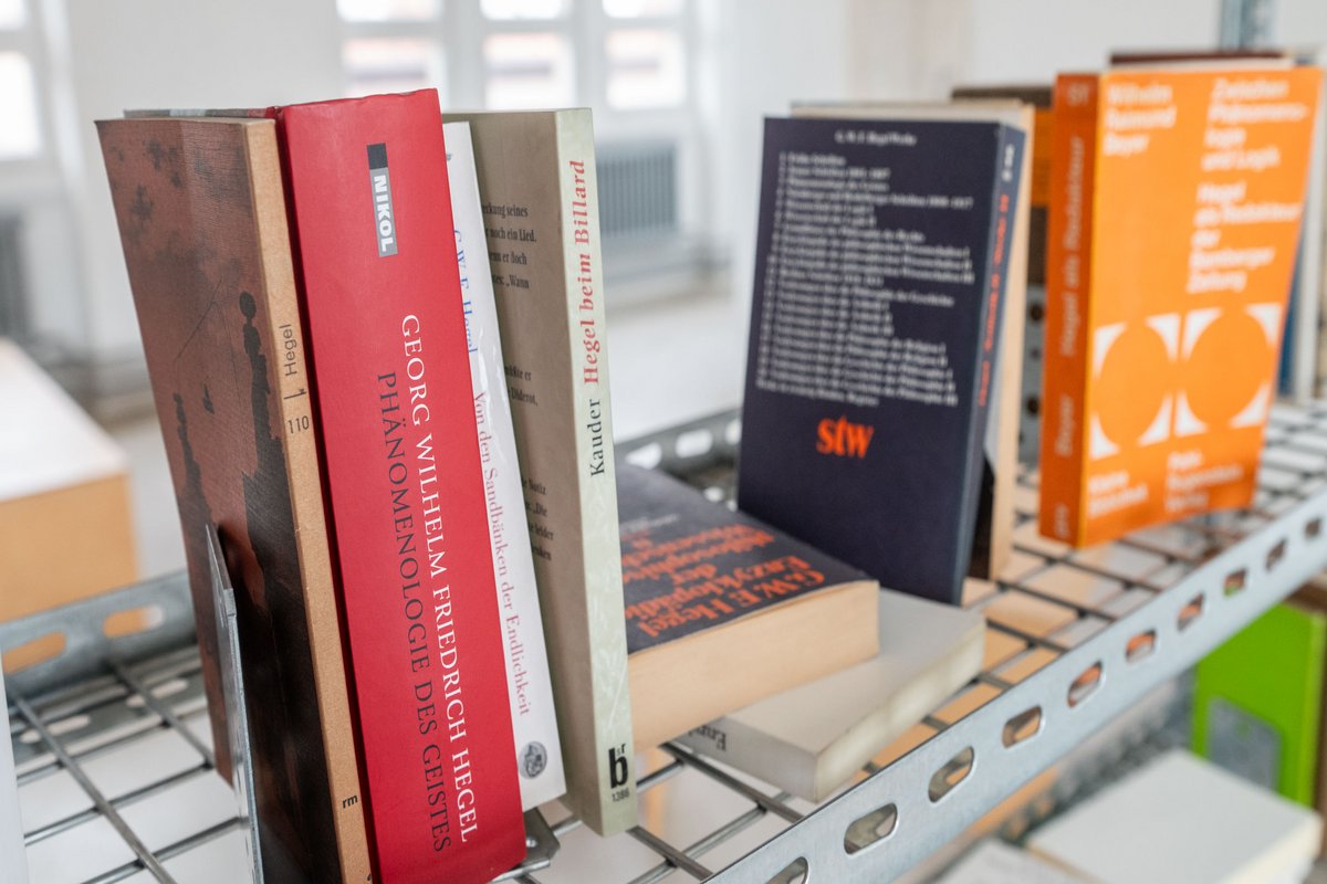 Die Werke Georg Wilhelm Friedrich Hegels, Höhenflüge der Geistesgeschichte, herabgewürdigt zur Nahrung von Pilzen: jener niedrigen Lebewesen, die der Stuttgarter Philosoph nicht einmal als genuine Pflanzen betrachten konnte. Das hätte sich der alte Besserwisser wohl nicht träumen lassen. Im Stuttgarter Künstlerhaus findet es statt: Austernpilze laben sich an den Seiten der "Phänomenologie des Geistes", von Hegels Vorlesungen zur Geschichte der Philosophie oder zur Ästhetik.