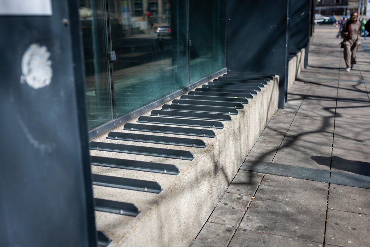 Im Gegenzug schwindet der öffentliche Raum als Ort basisdemokratischer Aushandlung. Ein Gang durch die Stuttgarter City zeigt, wie die Interessen weniger mit Klauen und Zähnen verteidigt werden, wie Architektur als Instrument dient, um politischen Willen zu befestigen. Wer nicht konsumiert, hat zu verschwinden, und um dies durchzusetzen, wuchert "defensive Architektur". So nennt man Maßnahmen, deren Ziel die Vertreibung marginalisierter Gruppen ist. Sitzbänke, überdachte Bereiche vor Gebäuden und andere Orte, die etwa Obdachlose nutzen, um sich aufzuwärmen, werden so gestaltet, dass sie möglichst nicht nutzbar sind. Auch Familien oder Menschen mit körperlicher Beeinträchtigung sind betroffen.