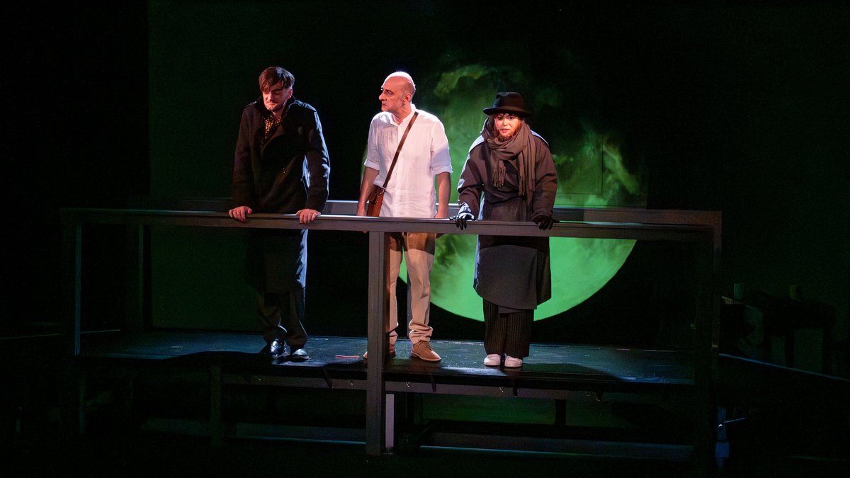 Die Inszenierung der tri-bühne hält sich dagegen weitestgehend an das Original, bis hin zur Drehbühne, die schon Horváth vorschreibt. Die Thematik mag weiterhin höchst aktuell sein, doch lässt sich das Stück nicht ohne Weiteres in die heutige Zeit übertragen. Bewachten zu Horváths Zeiten obrigkeitshörige Staatsdiener die Grenzübergänge, so zieht heute die Agentur Frontex durchs Mittelmeer, um Geflüchtete vom Betreten europäischen Bodens abzuhalten. Das passt nicht in ein so schlichtes wie anschauliches Bühnenbild: eine Brücke über einen Grenzfluss, zwei Grenzposten links und rechts.