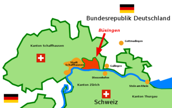 Die Jungen verlassen Büsingen und kommen nur zweimal die Woche zurück: am Dienstag und am Freitag. Dann trainiert der Turnverein, der größte und wichtigste Verein im Ort. Sie kommen aus der Schweiz, aus Schaffhausen oder Dörflingen, ihr Auto stellen sie vor der "Exklavenhalle" ab. Lebendig wird es tagsüber in der baden-württembergischen Gemeinde nur an schönen Sommertagen, dann kommen sie von überall her ins Freibad. Ansonsten ist die Gemeinde wie ausgestorben. Büsingen ist die älteste Gemeinde Baden-Württembergs.