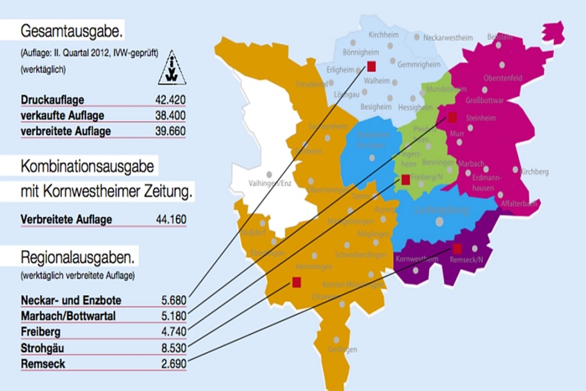 Das werden sie nicht gern hören bei der Südwestdeutschen Medien-Holding (SWMH) in Stuttgart-Möhringen, wo sie mit Zeitungsaufkäufen dem Konkurrenten in Ludwigsburg seit Jahren immer mehr auf die Pelle rücken. Mit der "Marbacher Zeitung" von Westen aus, mit der "Kornwestheimer Zeitung" von Süden aus, mit der "Stuttgarter Zeitung" und ihrer täglichen Lokalausgabe "Strohgäu Extra" von Südosten aus. Geändert hat das an den Kräfteverhältnissen nicht wirklich was, denn auch die Mantelzeitungen verlieren beständig Leser.
