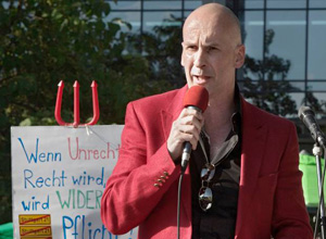 Die große Linie im Kleinen aufzuspüren, ist das Bestreben des S-21-Widerständlers Volker Lösch. Was Politikverdrossenheit und den Stuttgarter Tiefbahnhof verbindet, zeigt der Regisseur in seiner Rede zur 350. Montagsdemo auf.