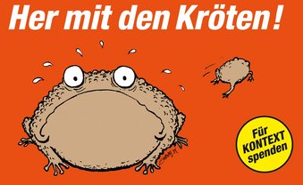 Denn Kontext lebt von einmaligen und regelmäßigen Spenden (den "Solis"). Die Kontext:Wochenzeitung ist ein unabhängiges, werbefreies und nichtkommerzielles Medium. Wir nehmen kein Geld über Anzeigen ein und haben keine Online-Bezahlschranke, damit auch Menschen, die nur sehr wenig Moos haben, Kontext frei im Netz lesen können. Wir wünschen uns, dass das so bleibt.