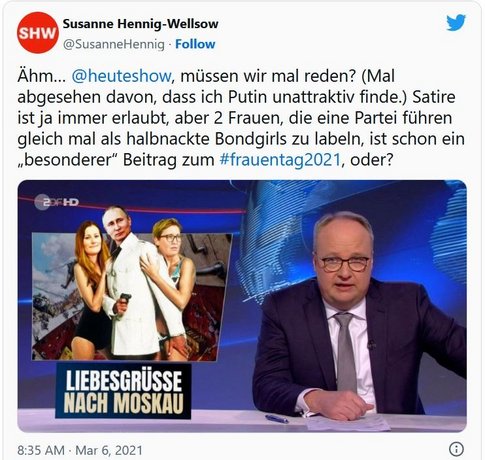 Verständnis, bis hin zur Bewunderung, äußern auch die Rechten – bei unterschiedlicher Motivlage. AfD-Abgeordnete rufen sogleich zur Abschaffung des öffentlich-rechtlichen Rundfunks auf. Julian Reichelt, der frühere Chefredakteur der "Bild"-Zeitung und heutige Rechtsaußen-Blogger ("Achtung Reichelt") feiert die linke Kabarettistin als "Heldin".