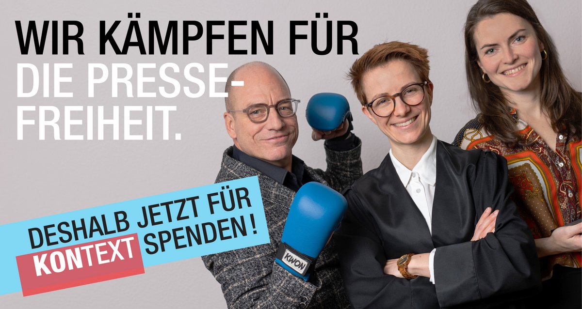 Die Kontext-Wochenzeitung gäbe es vermutlich nicht mehr ohne Markus Köhler. Von Anfang an dabei, einer der besten Presserechtler im Land, jüngst 60 geworden, eine coole Socke in den schicksten Schuhen, immer zu einem "Budenzauber" bereit, wenn er den Gerichtssaal betritt. Mit ihm Franziska Schaible und Anja Pfander, die seine Leidenschaft für das Thema teilen. In die Bütt' für ein couragiertes Medium. Gemeinsam ist dem Trio von Oppenländer Rechtsanwälte, so unser Eindruck, dass der Job auch Laune machen kann. Besonders nach einem erfolgreichen Kontext-Gerichtstag.