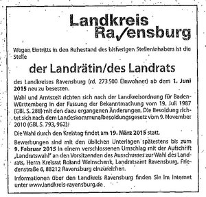 Zu dieser Wahl war alles ein wenig anderes. In Oberschwaben tobt seit Jahren ein Streit um die Zusammenlegung zweier Kliniken, und da kam es im Kreistag zu dem Wunsch, doch einen Landrats-Kandidaten von außerhalb zu holen anstatt irgendeinen Internen, Krankenhaus-Vorbelasteten. Eine kleine Revolution in einer fast schon bockelharten Politikgesellschaft wie der in Oberschwaben.