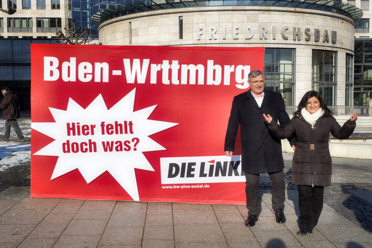 Ein guter Gedanke in der Theorie, ein schwer umsetzbarer in der Praxis. Die Linke bleibt für Kretschmann der Gegner, und andersrum auch. Der Grüne sei der "Wiedergänger von Erwin Teufel", schimpft Gewerkschafter Riexinger immer wieder und zählt auf, was unter Grün-Rot alles nicht gemacht worden sei. Eine soziale Wohnungspolitik, ein Programm gegen Kinderarmut, gegen prekäre Arbeit, Leiharbeit, Sozialdumping. Stattdessen eine Erbschaftssteuer im Sinne der schwäbischen Millionäre. Und dann so tun, als wäre Baden-Württemberg das "letzte Paradies". Ja, sagt Rockenbauch, "es ist mühsam in diesem Land". Wir führen die "Welt an die Wand", und auf unseren Straßen die Giga-Liner von Daimler. Da ist was dran.